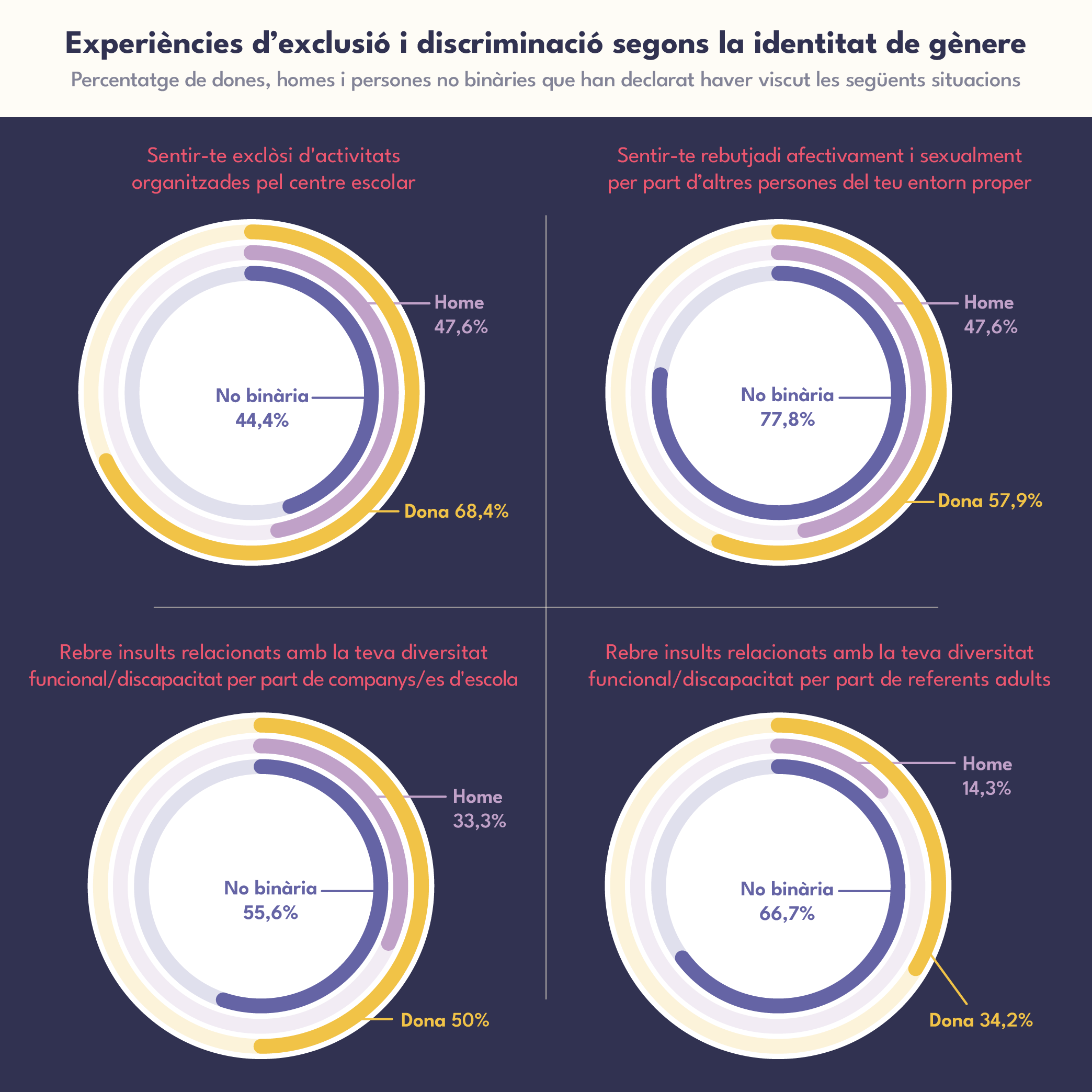 En l'enquesta, hem volgut recollir formes específiques de violència cap a cossos amb discapacitat, diskas o amb diversitat funcional, ja que aquestes violències, d'una banda, reflecteixen la desigualtat i, d'una altra banda, condicionen les experiències en els contextos en què s'imparteix educació sexual.